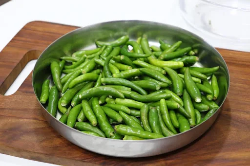 - हरी मिर्च को अच्छे से धोकर सुखा लें। यह सुनिश्चित करें कि मिर्च पर पानी न रहे।